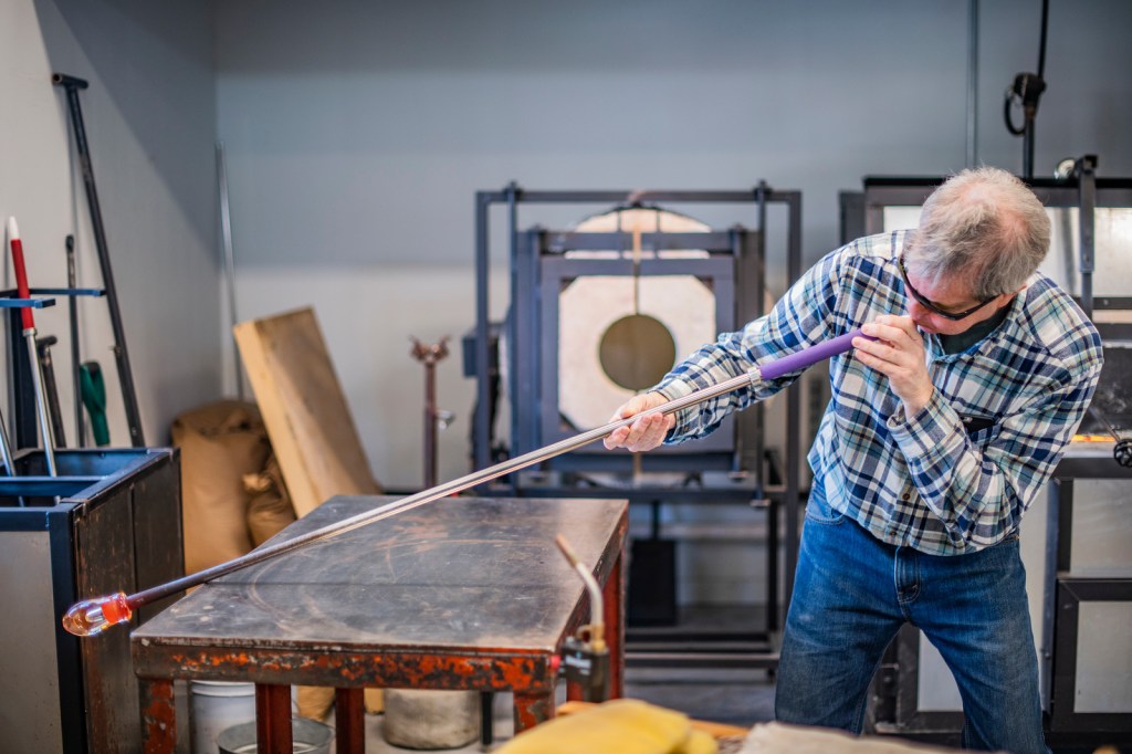 Dan blows a small piece to demonstrate the process. Photos by Kristina Gibb Photography.