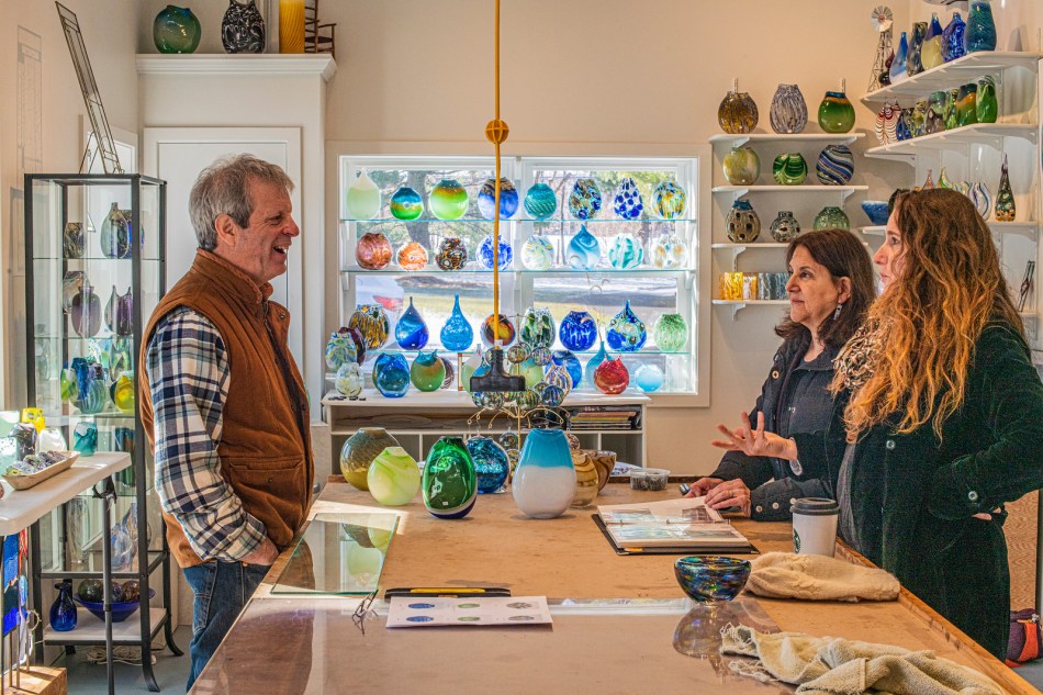 Glass work big and small adores every shelf and every corner of the studio’s shop. Photos by Kristina Gibb Photography.