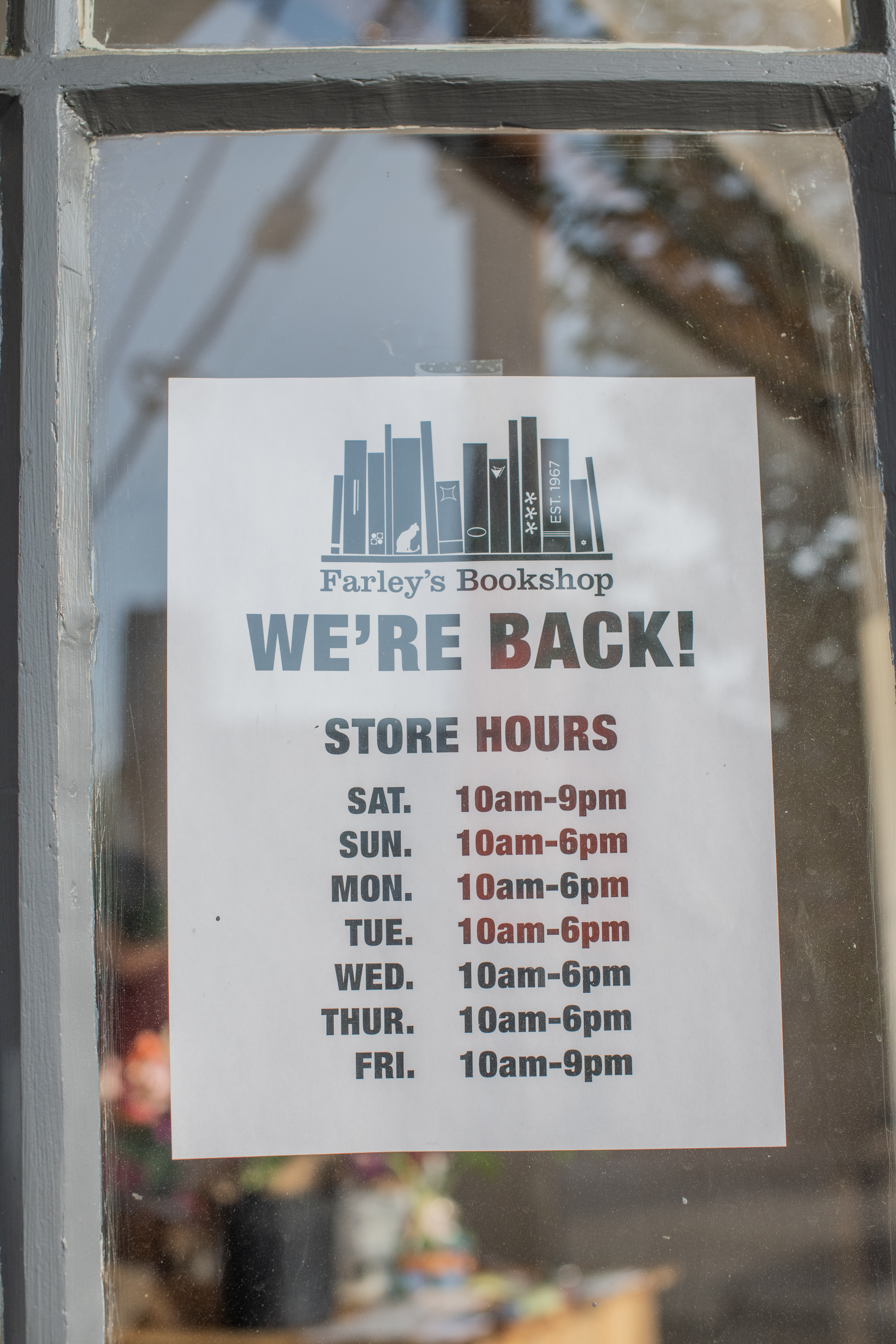 In 2007, Katie Rarich walked in. She had graduated college, spent some years living abroad, and was looking for work upon her return to the States. Her love of books carried her through the door and into the fabric of Farley’s. When she started her 15 year journey toward ownership, Julian was managing the shop, and the locally famous bookstore cat, Butter, was an established extension to the staff.